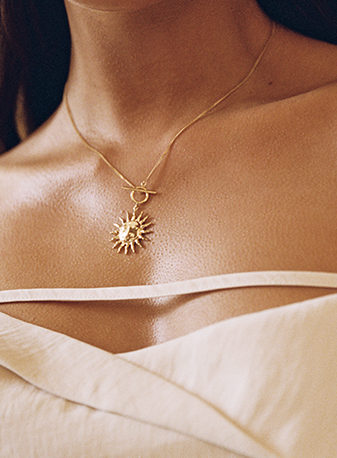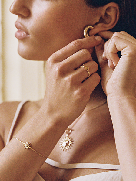 Ein langsamer Morgen verlangt nach Pieces, die leicht zu stylen sind: Begrüße den Tag mit diesen strahlenden Sonnenanhängern.