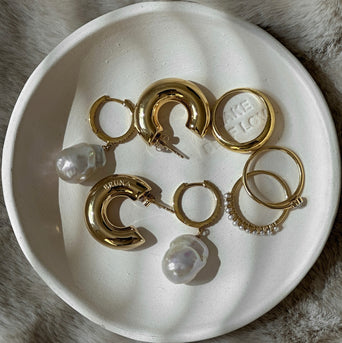 We use genuine cultured freshwater pearls and cultured Tahitian keshi pearls in our jewelry. Each pearl is unique and will vary in size and color—reflecting the unique beauty of its wearer. Pearls are especially delicate, so treat them with extra love and care.