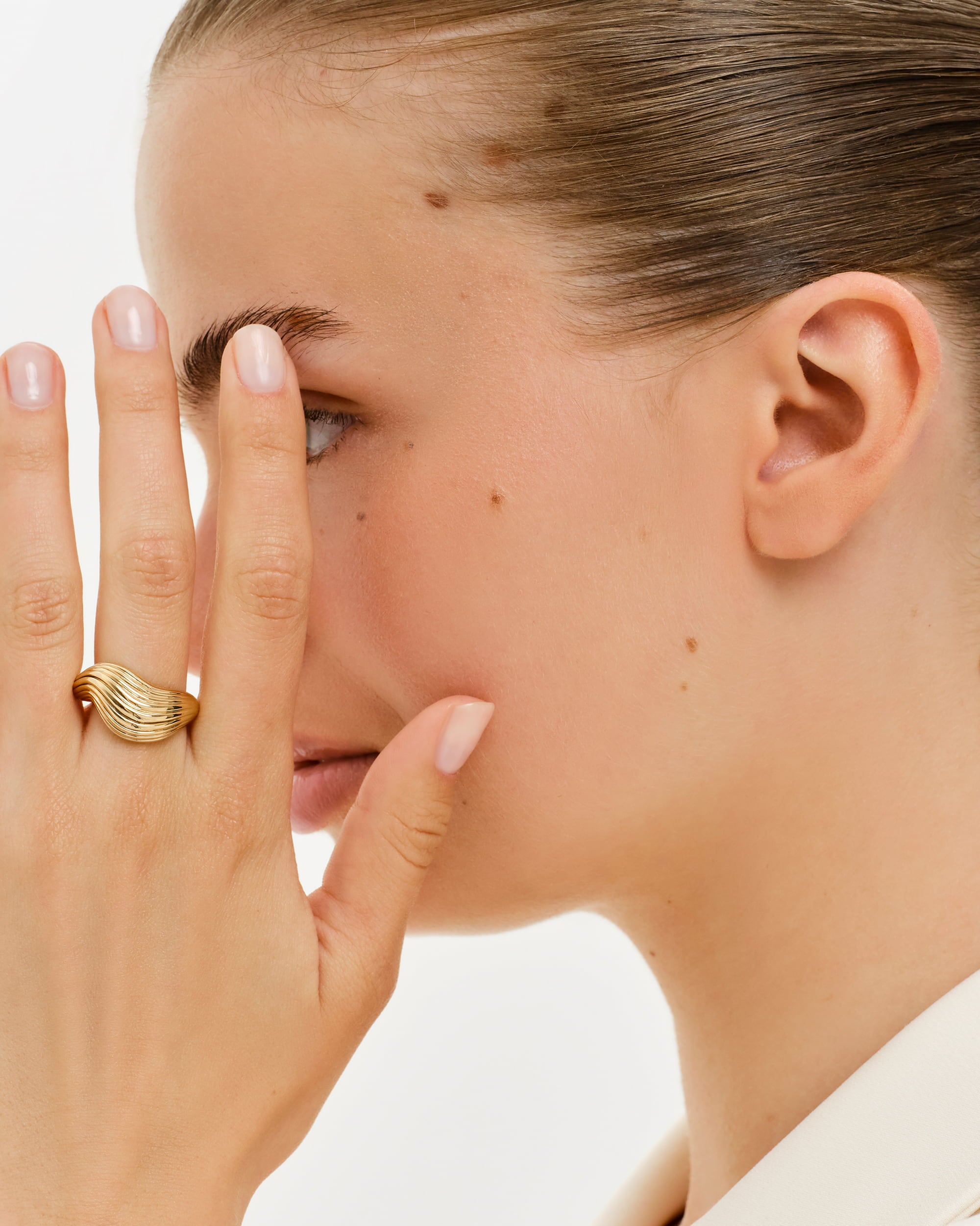 Zeitlos und dennoch ein Statement: Der Emelie Ring überzeugt durch seine skulpturale Form, die an die Bewegung von Wasser erinnert. Trage ihn einzeln oder im Stacking-Look mit anderen Ringen.